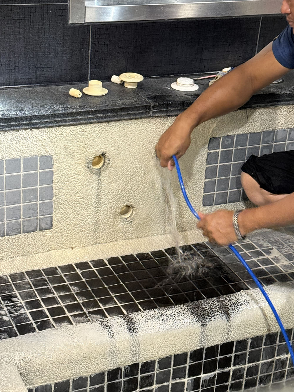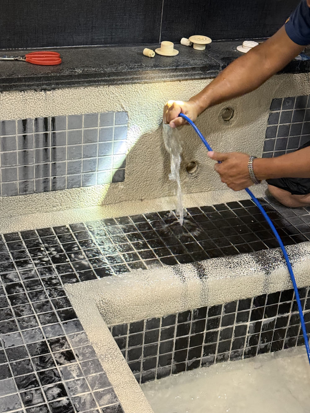 本案針對商用SPA池冷熱水循環管線進行高周波清洗疏通,利用設備震動方式分解管內水垢與沉積物,改善水量不足與溫度不穩定問題,全程不破壞原有管線,適合高使用頻率的營業場所。